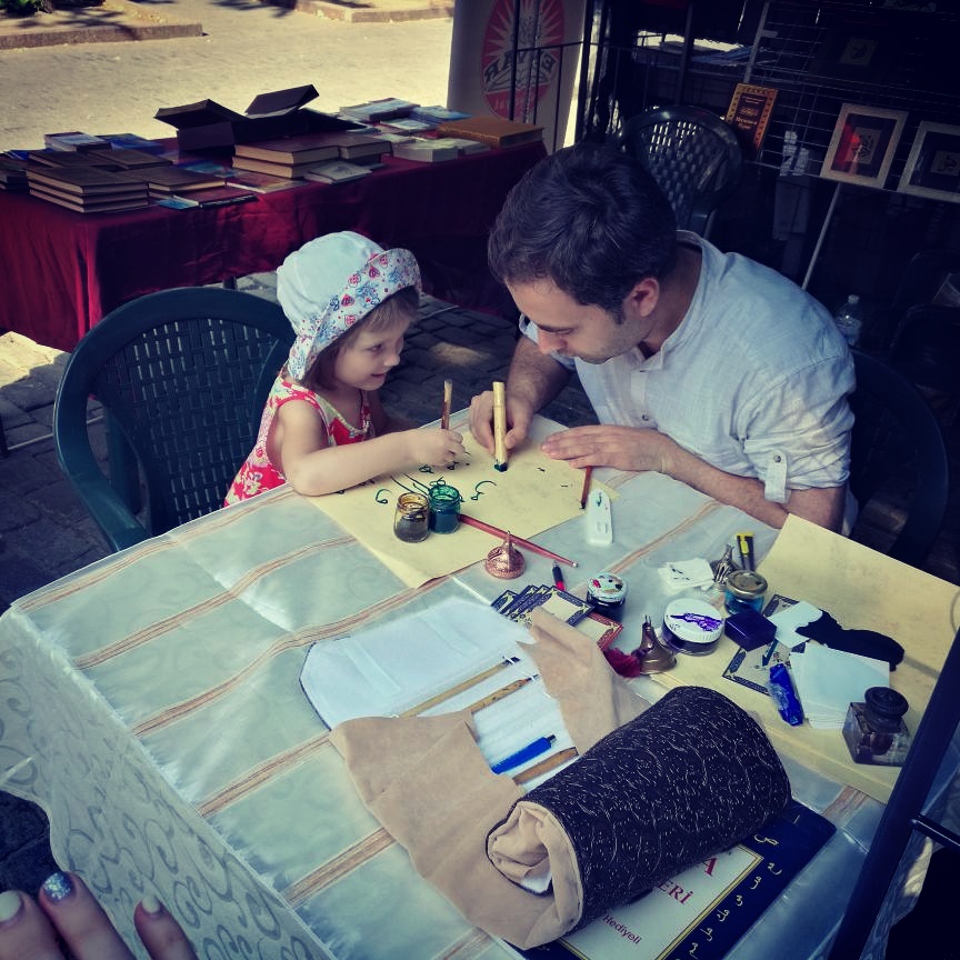 Bir önceki fuarda çok sık duyduğumuz sorulara, bu sene de şahit olduk : “Burada bir merkeziniz var mı? Derslerinize katılmak istiyoruz, mümkünse..” Burada herkes yediden yetmişe hat sanatına ilgi duyuyor. Kalem ve hokka ile tanışmak isteyen, heyecanını dışarı vuran birçok “Müslüman adayı” ile tanışmış olduk. Kalem ve Hokka ile her deneme yapan kişiye, isminin yazıldığı bir vecize kartı ve Risale-i Nur’dan küçük kitaplar hediye edildi. Bazı çocukların ailelerini bırakıp tekrar gelip kaleme sarıldığını gördük..”